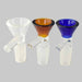 The bowl is made with crystal clear borosilicate glass, a perfect material for pure and smooth sessions with herbs. The funnel shape is a go-to choice for seasoned smokers, as it offers a fast heat up and a clean and consistent hit. The glass handle on the side allows you to remove the bowl while it's still hot.