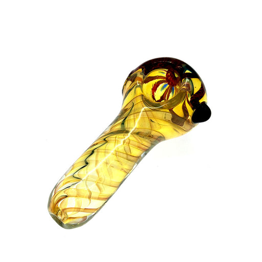 Fumed Yellow Spoon Spiral Stripes W/ Red Flower Bowl and Blue Marbles 085#