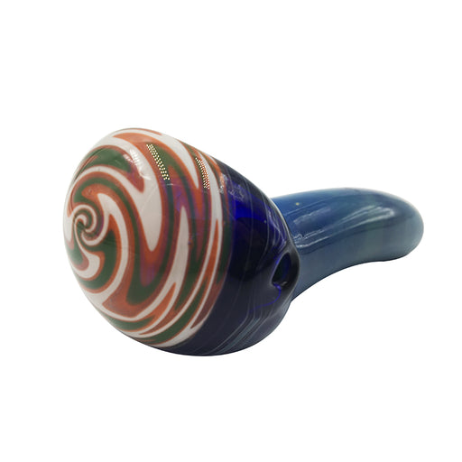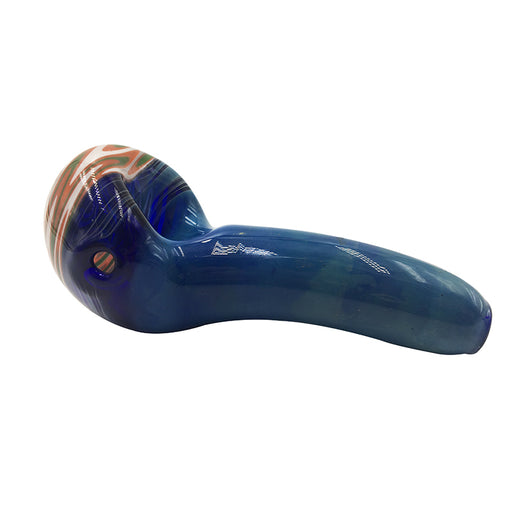 Fumed Inside-Out Double Blue Stripe Frit Spoon Pipe 101#